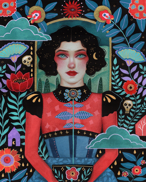 Medium: Acrylic, Gouache, Oils Pastel, Colored Penci; & Gold Ink