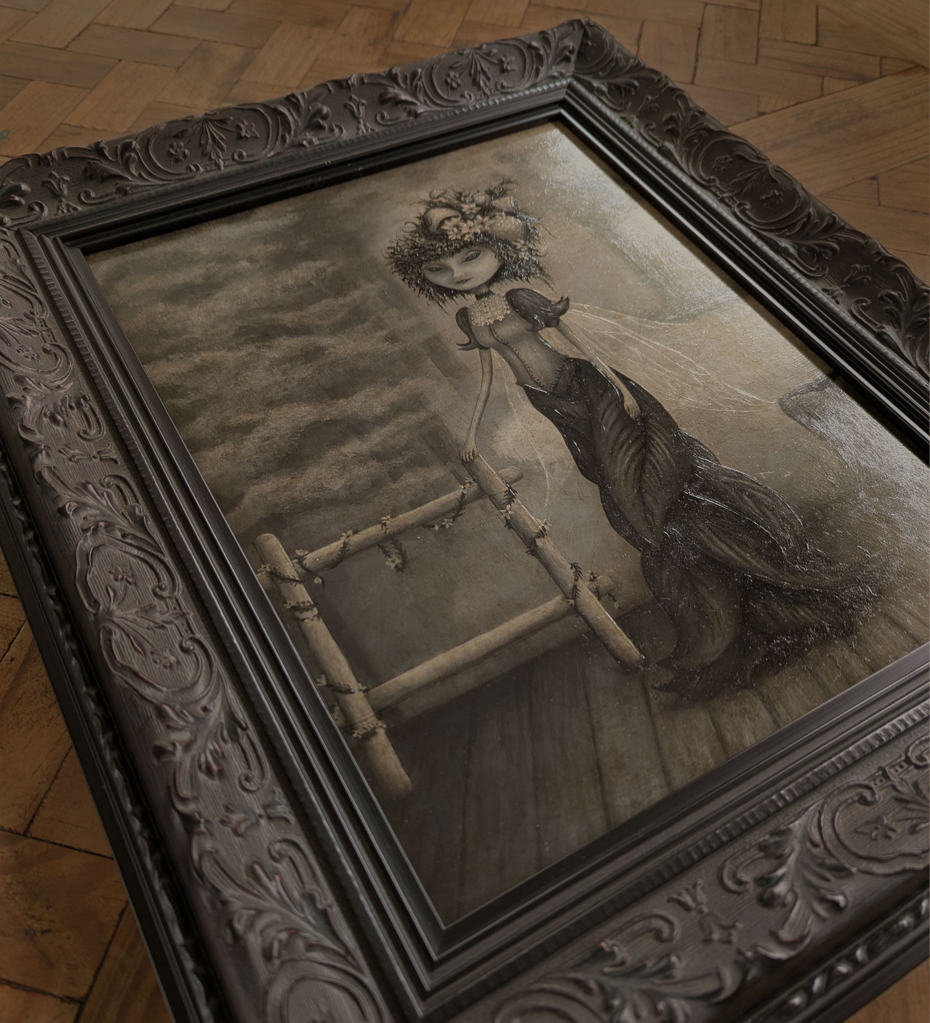 This Fae's name was Heristone. A Fae of the Upper Realms, she was entrusted with the quiet work of spreading energy from spring’s first bloom and sharing the soft wisdom of autumn’s falling leaves. Yet, her heart longed to be as carefree as humans, to wander untroubled along the river on a fine day."