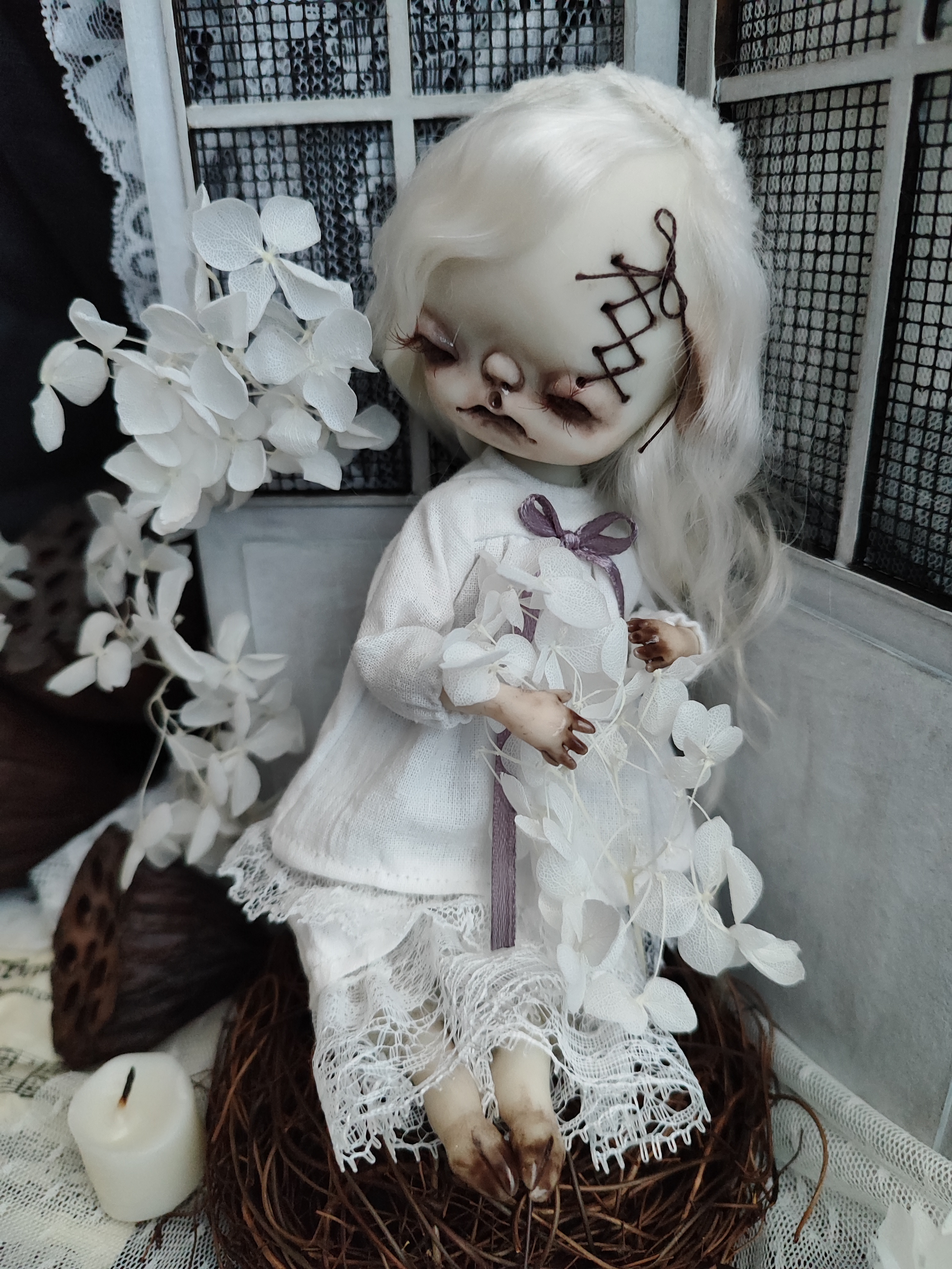 Medium: Polymer clay, viscose for teddy, wool, polyester, cotton, wire