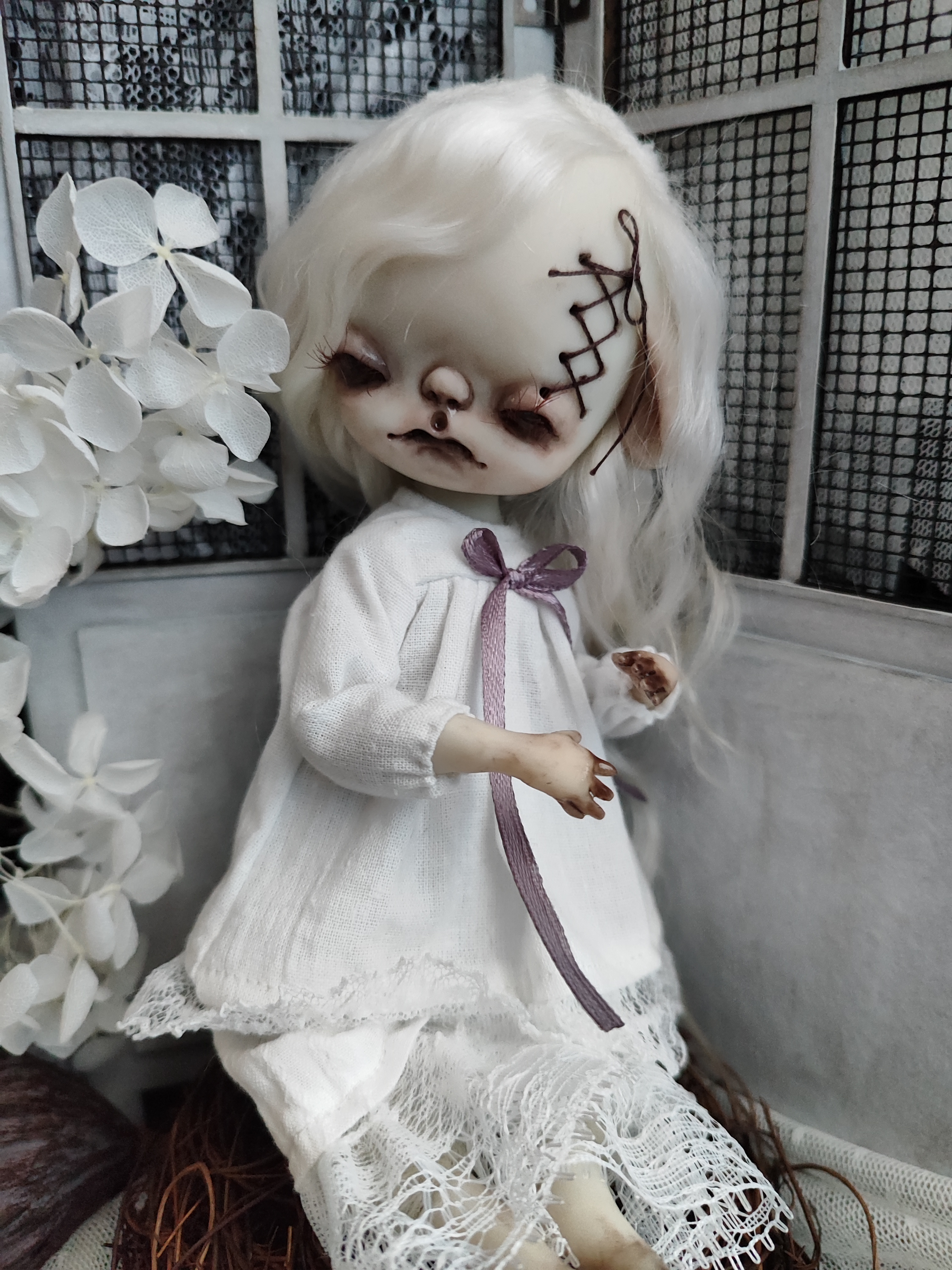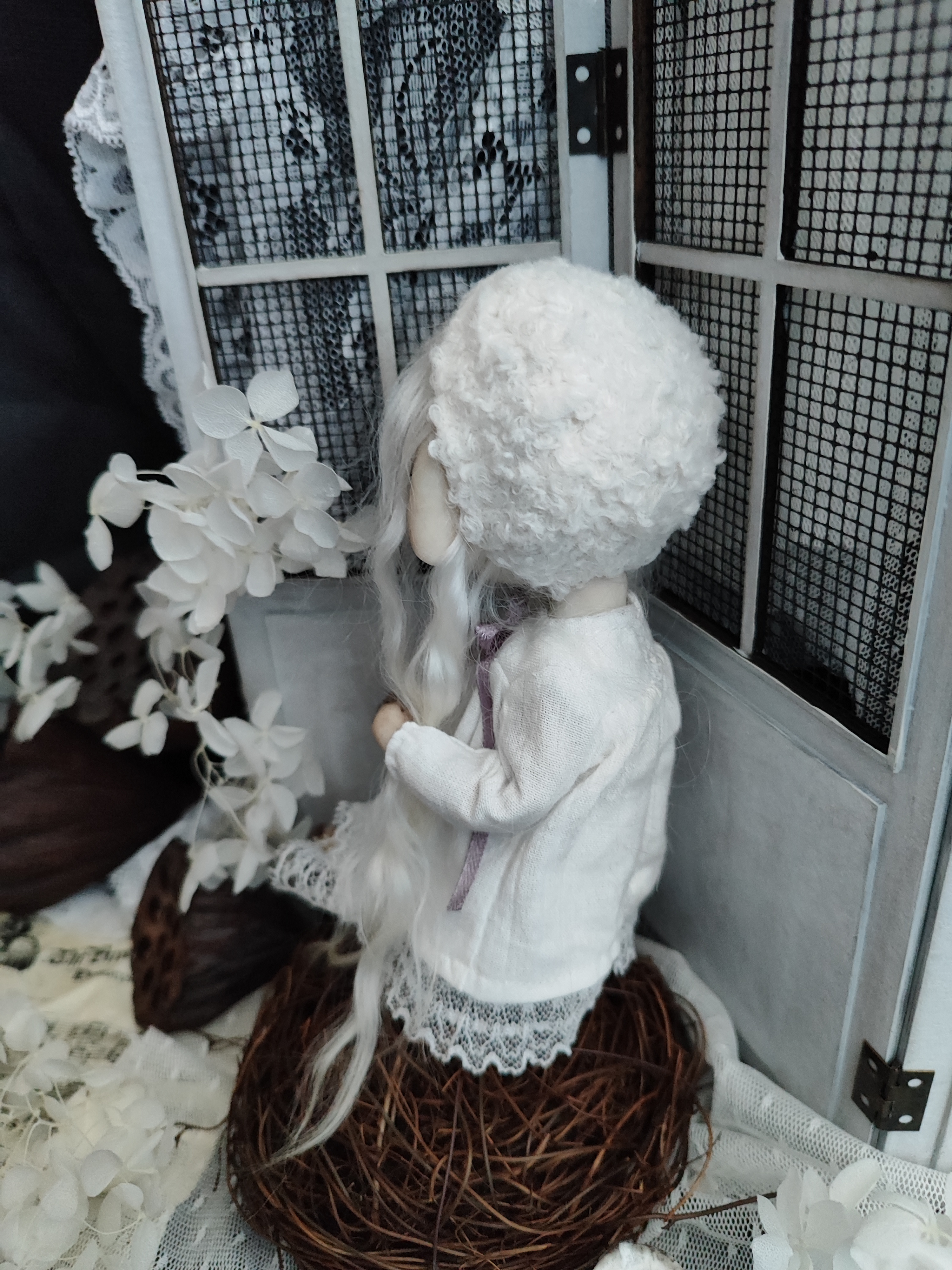 -The doll has a soft back of the head and soft body, the head is connected to the neck with a cotter pin, which creates the effect of a "swinging" head.