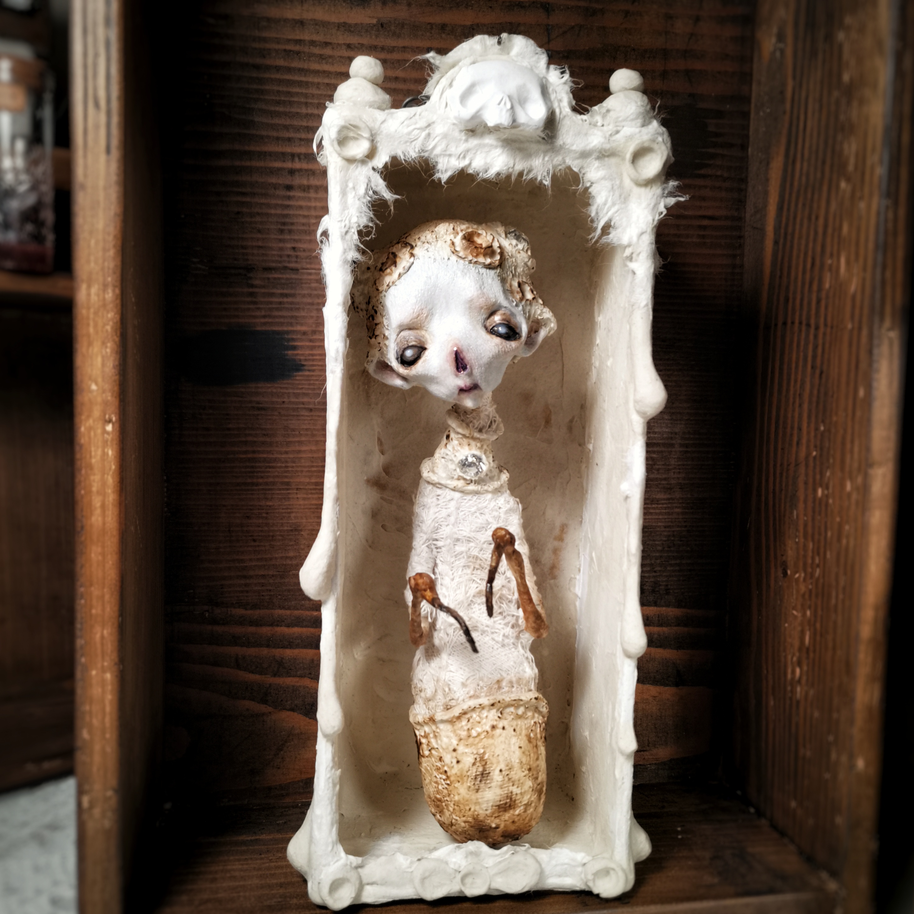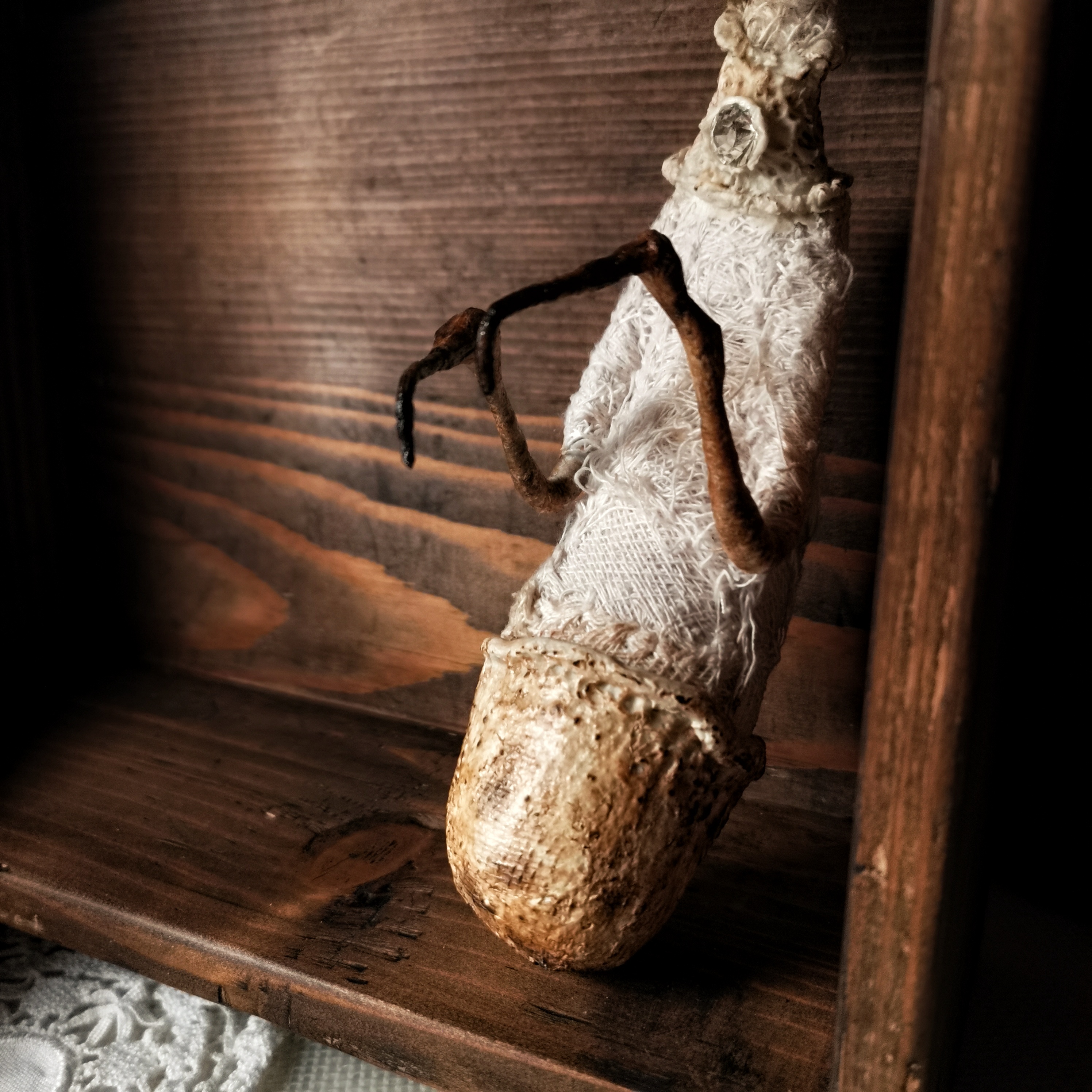 Medium: Paperclay, papermache clay, cotton fabric