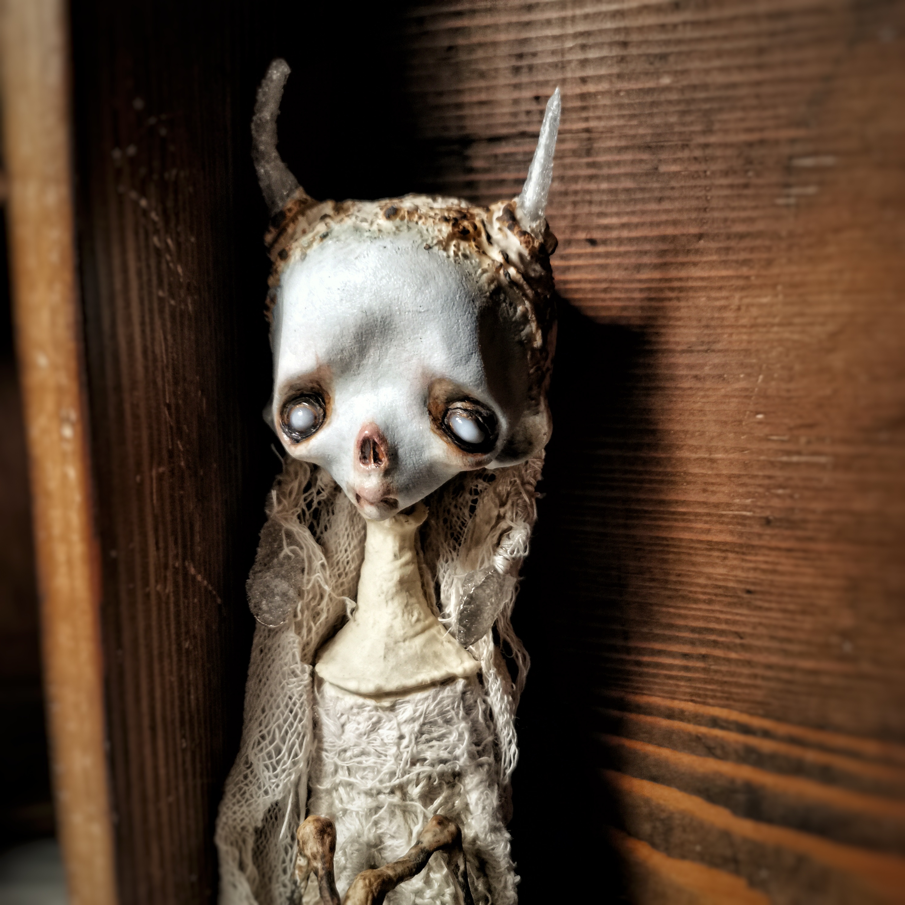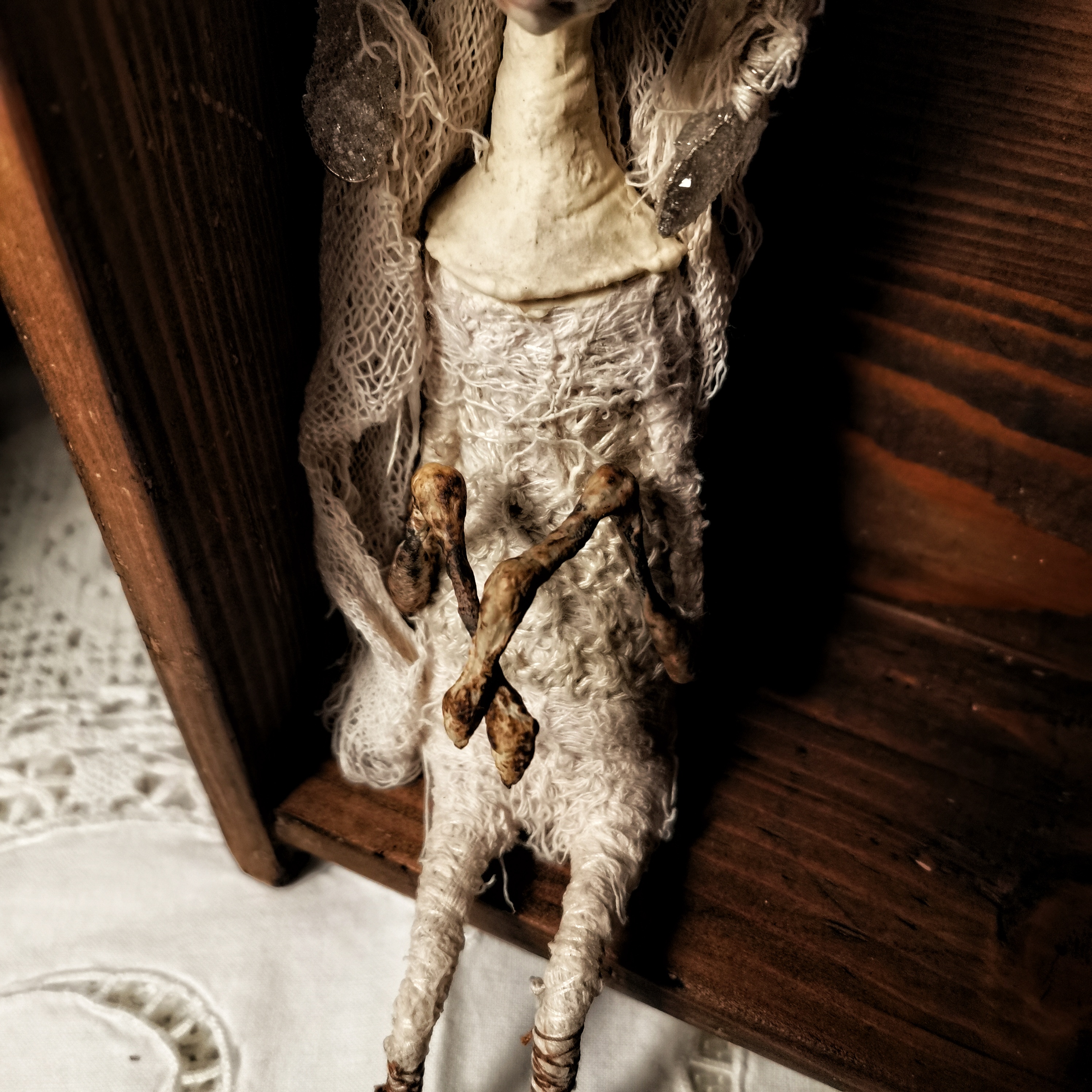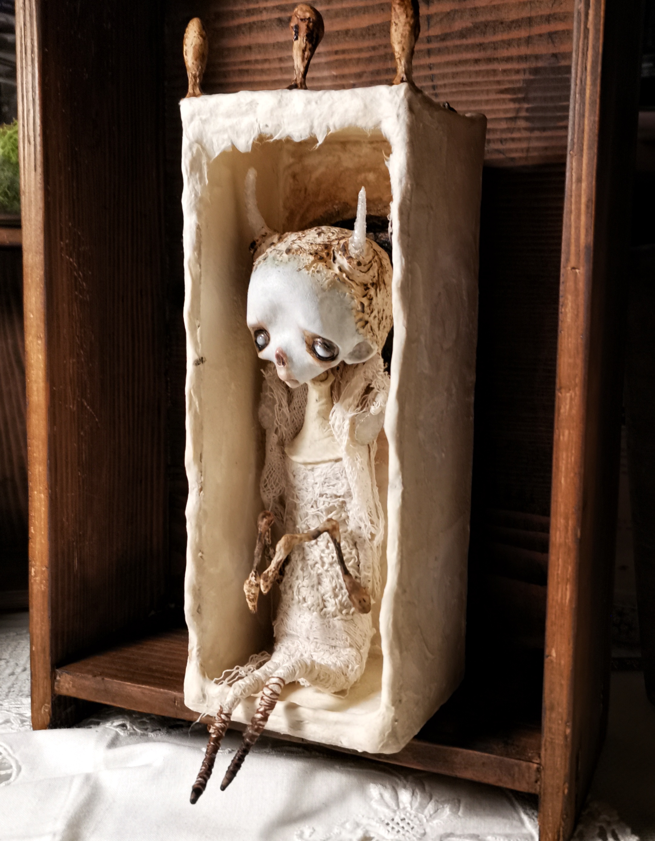 Medium: Paperclay, papermache clay, cotton fabric, resin