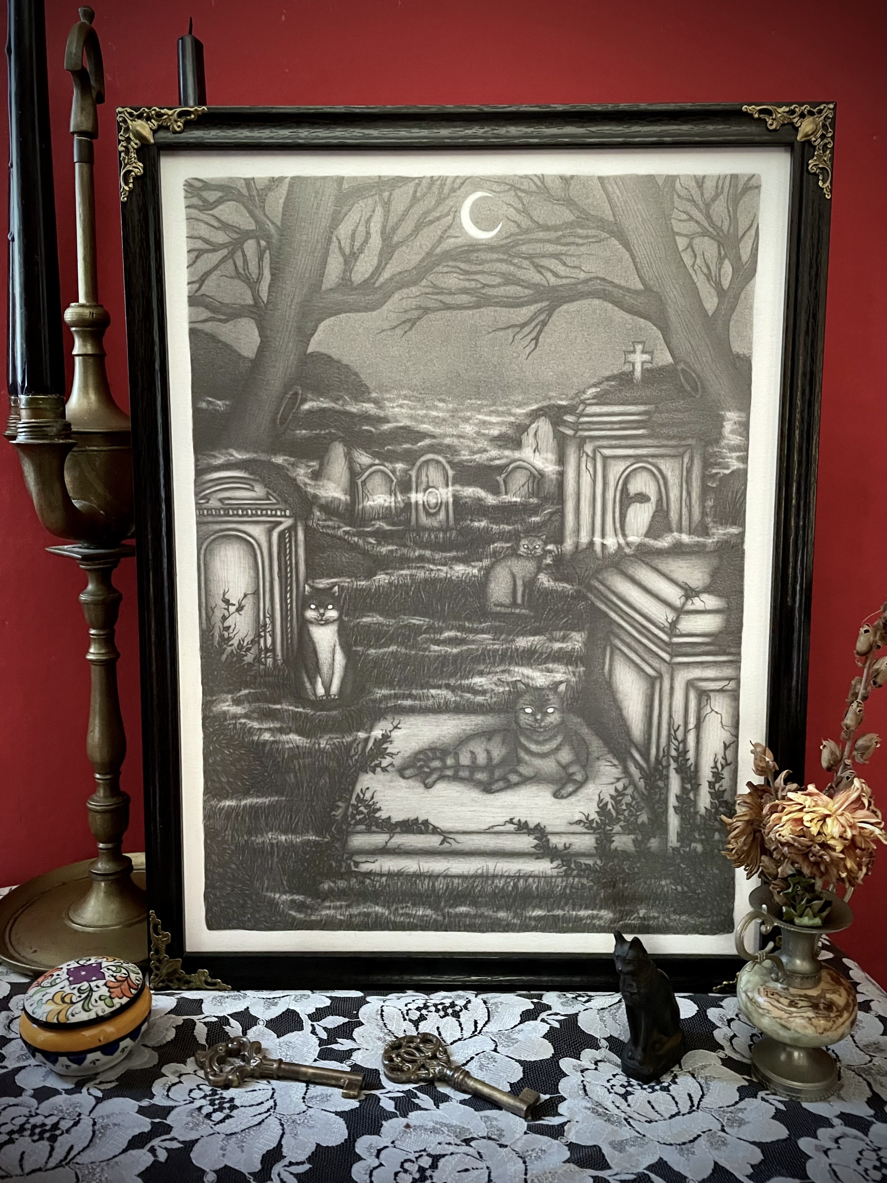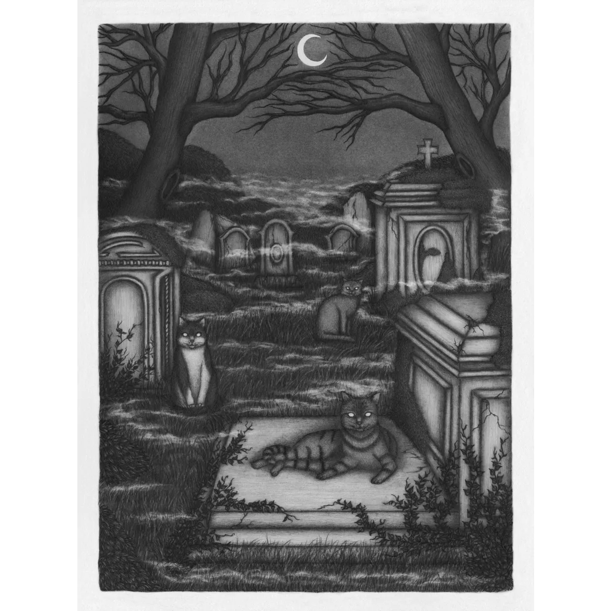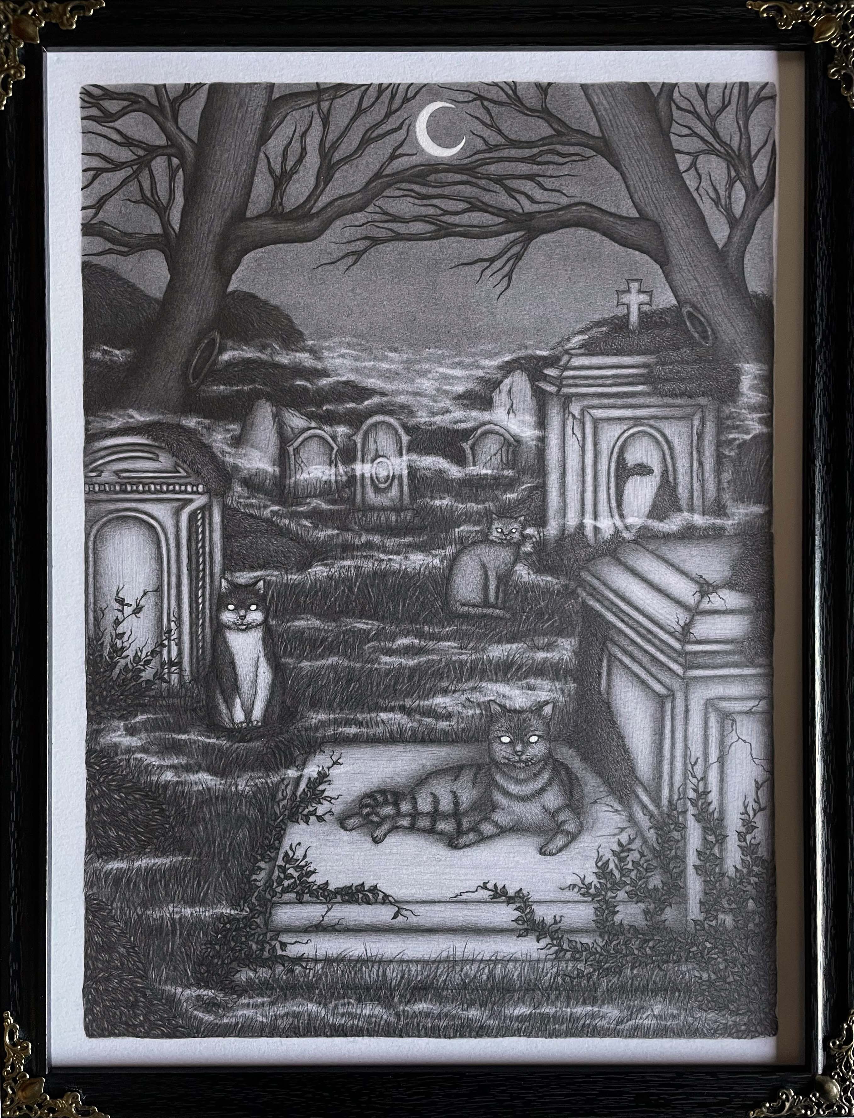 "According to folklore, cats have a strong magical power and a connection with the afterlife and the supernatural, they are able to see ghosts and it's not uncommon to see them wandering around cemeteries. This is where the idea of cats as guardians of forgotten souls comes from."