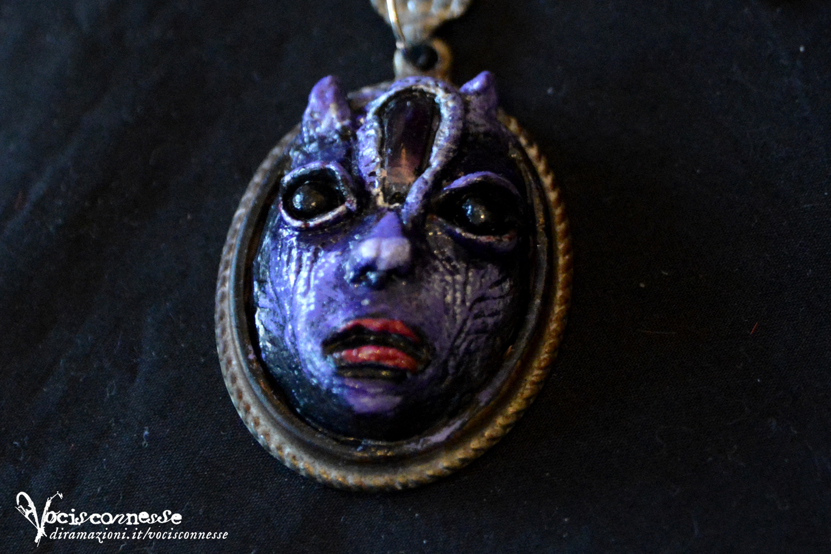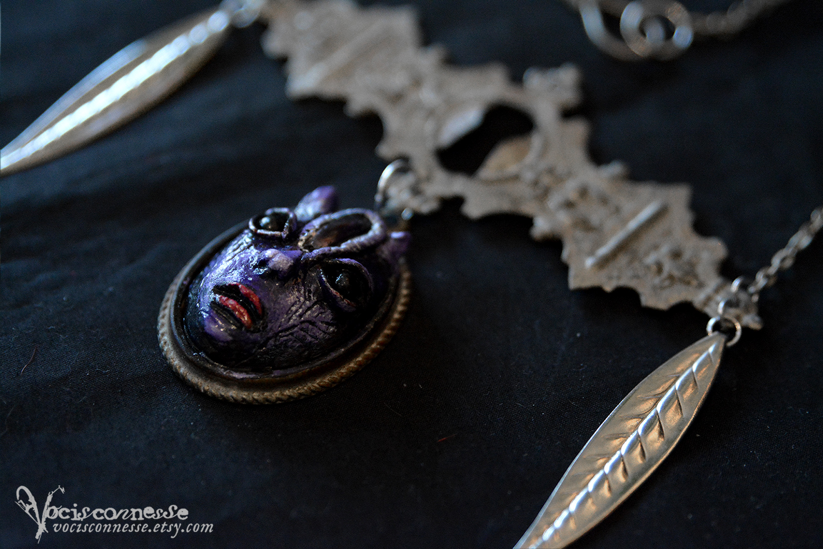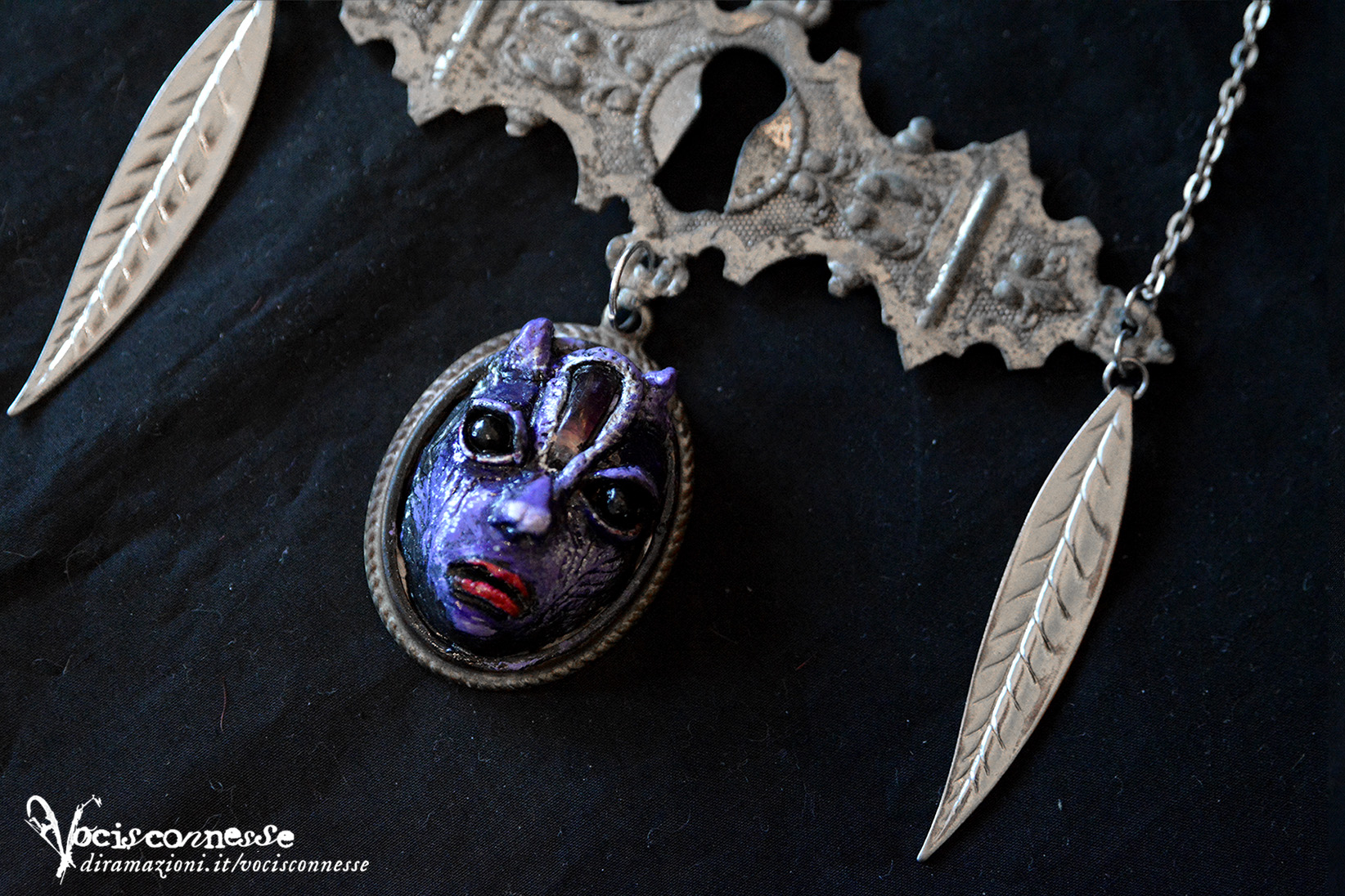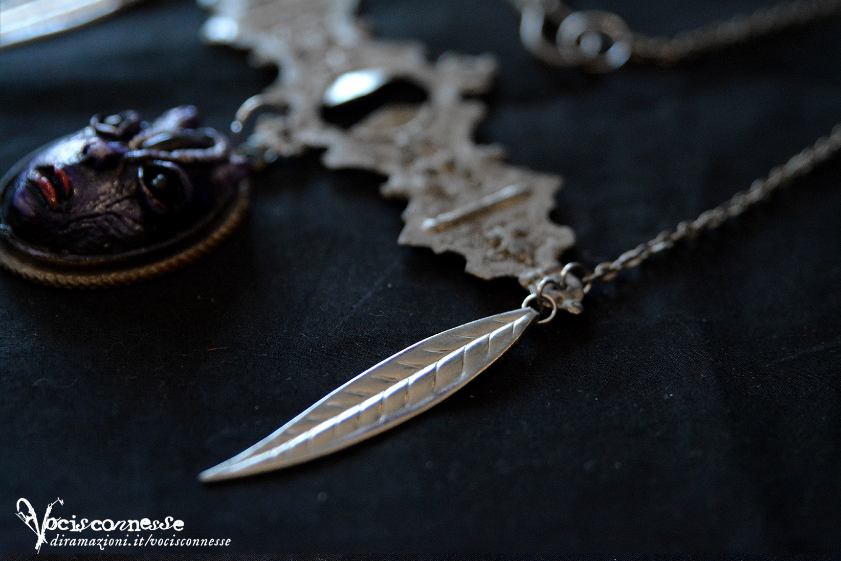 Size: The central sculpted piece: 4,5 x 3,2 x 1 cm. Necklace: 29 x 10,5 (length 54 cm opened and spread)